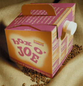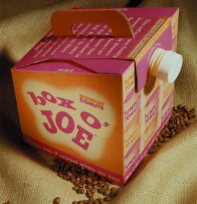 The only criticism of of the box o” Joe is the use of the box at the end. Initially, when the box is full of coffee, liquid flows out steadily and the user can visually gauge how much coffee is being poured out. However, as the liquid dwindles the user must lift the box higher and higher in the air until the width of the box actually blocks the view of the cup into which the coffee is being poured. This can result in too little or too much coffee being poured. Nevertheless, box o’ Joe coffee is on the whole a great product that ought to be replicated in other similar restaurants. Great job Dunkin Donuts.
